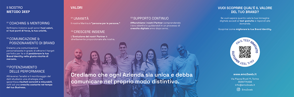Si distingue per l’attenzione e l’ascolto rivolti al cliente, con l’obiettivo di migliorare la sua comunicazione e garantire risultati concreti in vista di una crescita comune.